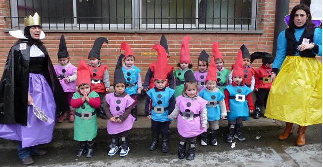 Otra vez los carnavales. Después de unas semanas con el tiempo tan malo: Nieve, hielo, lluvia... hoy se ha calmado y hemos podido hacer el pasacalles. El tema de este año: Las películas y los dibujos animados: Los tres cerditos y los lobos, Blancanieves y los enanitos, el flautista de Hamelin, Bob Esponja, mary Poppins y los raperos han andado hoy por la escuela.